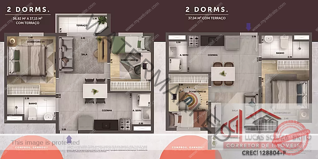 | 2 Dorms c/ Varanda | 37m² | Não | R$ 281.741 |